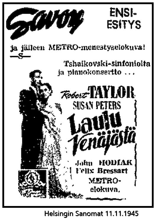 Tehtäväni Moskovassa tuli Suomessa ensi-iltaan vaaran vuosina 13. syyskuuta 1945, lähes 2,5 vuotta Washingtonin ensi-iltansa jälkeen. Filmiä mainostettiin ”paljastuksilla, jotka ovat hämmästyttäneet maailmaa”. Ensimmäiset kymmenen päivää sitä esitettiin maan suurimmassa elokuvateatterissa, Helsingin Kaisaniemenkadun Metropolissa, ja sen jälkeen vielä viikon verran Hakaniemen Tähdessä. Marraskuussa ”paljastuksia” jatkoi Robert Taylorin tähdittämä Laulu Venäjästä (Song of Russia, 1943), jossa Triesault näytteli komissaaria. Suomen televisiossa kumpaakaan ei ole esitetty.