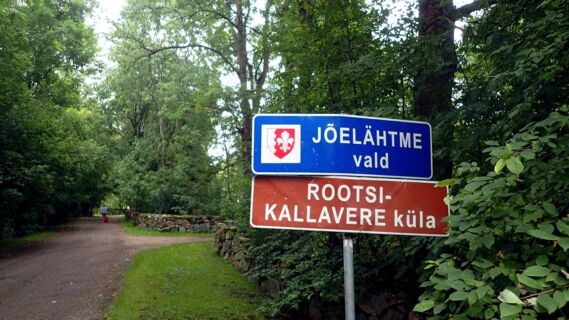 Päätepysäkkikentältä katsoen vasemmalla nousee laaja kerrostaloalue, lähiömallia kuin Suomessa. Kentän kulmassa seisoo pieni huoltomökki, jonka takaa alkaa hiekkatie metsään. Mitään viittaa tai vihjettä odotettavasta ei ole, mutta kohta tien laidassa on kyltti: Jõelähtme vald, Rootsi-Kallavere küla.